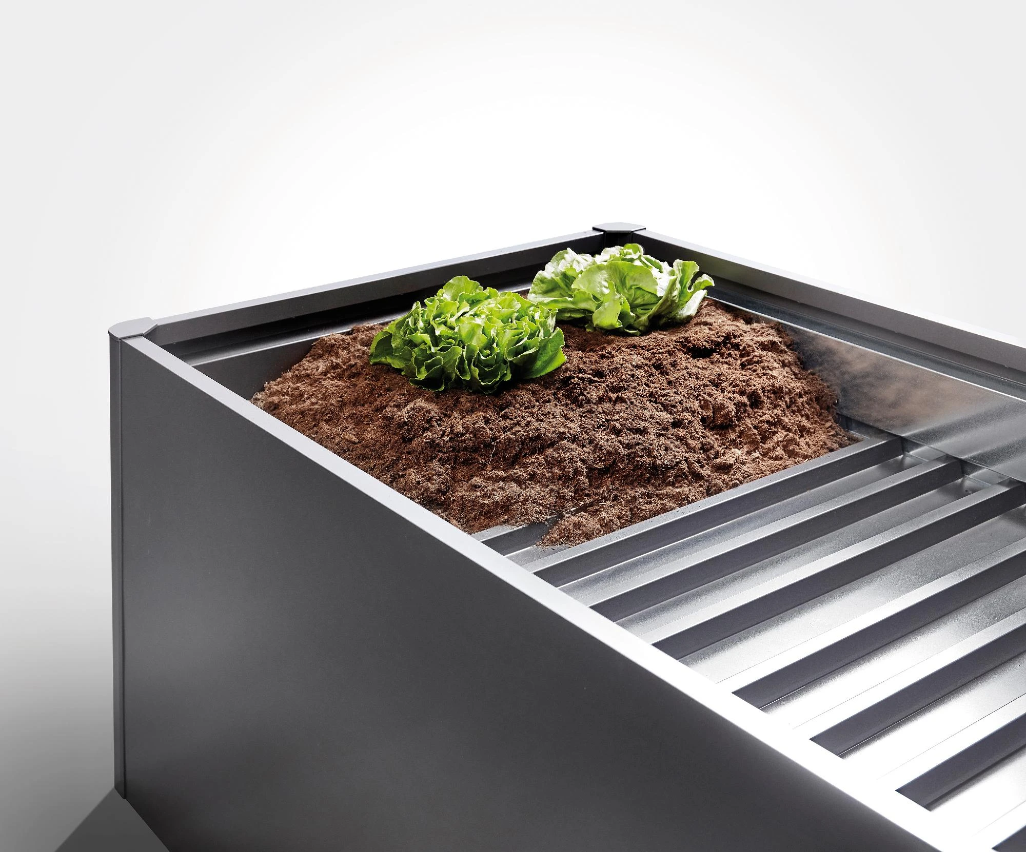 Der Zwischenboden reduziert das Erdvolumen, spart teures Befüllungsmaterial und wertvolle Zeit. Er wird beim Aufbau einfach auf die zweite Sicke von oben aufgelegt. Um den Wasserablauf zu gewährleisten und Staunässe zu vermeiden, ist der Zwischenboden nicht wasserdicht.