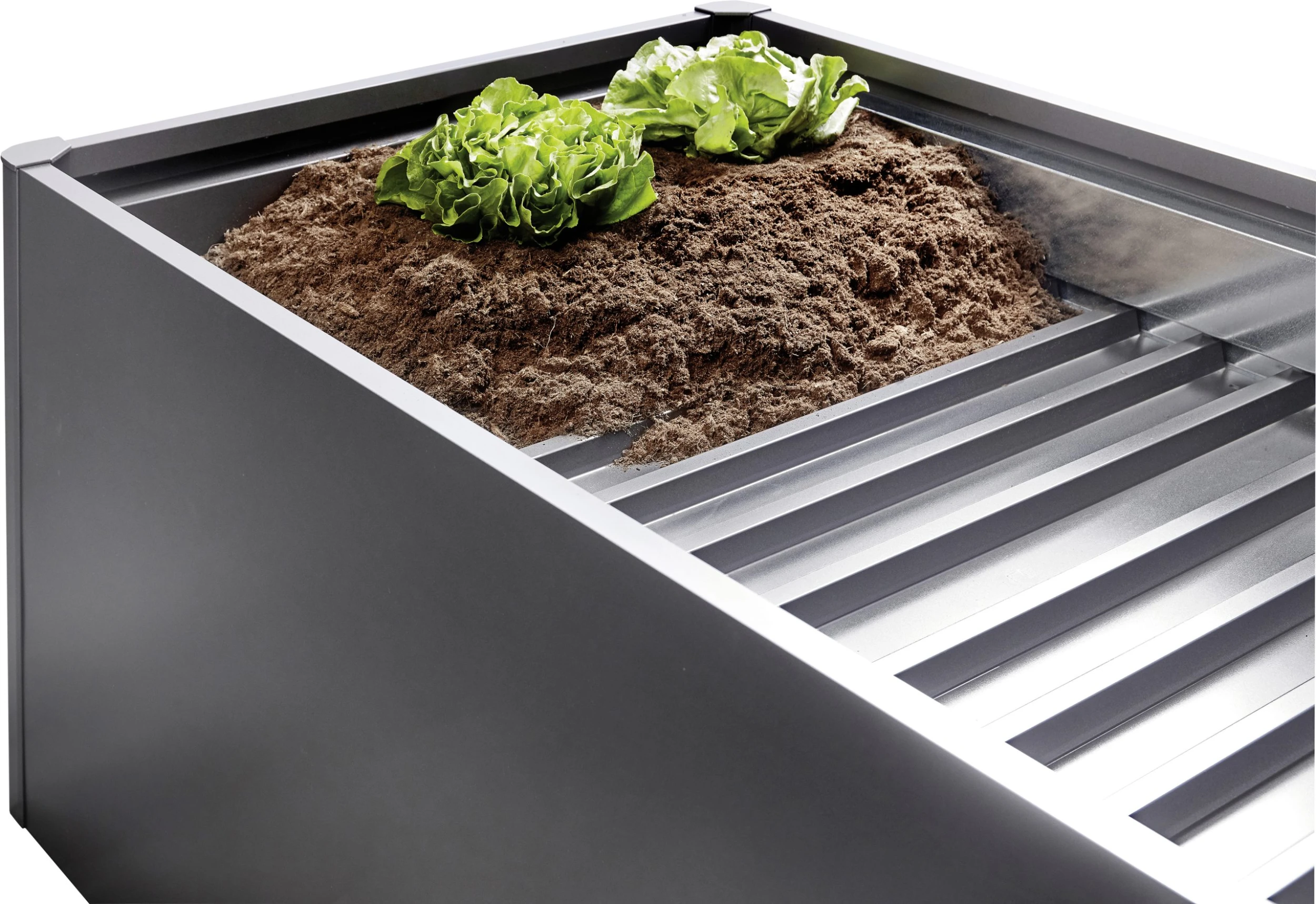 Der Zwischenboden reduziert das Erdvolumen, spart teures BefĂŒllungsmaterial und wertvolle Zeit. Er wird beim Aufbau einfach auf die zweite Sicke von oben aufgelegt. Um den Wasserablauf zu gewĂ€hrleisten und StaunĂ€sse zu vermeiden, ist der Zwischenboden nicht wasserdicht.