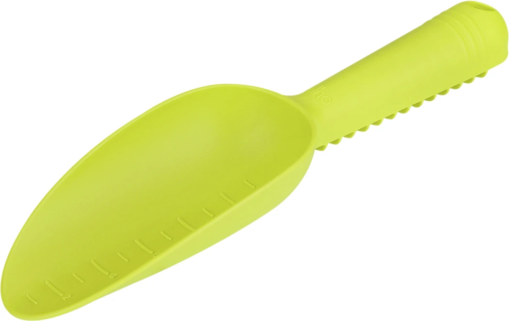 Die green basics Schaufel ist bei der Gartenarbeit einfach unverzichtbar. Die kleine Schaufel ist ideal, um kleine Töpfe mit Erde zu befüllen. Zum Einpflanzen und Befüllen von größeren Töpfen gibt es die große Schaufel. Mit ihrem ergonomisch geformten Design liegt sie gut in der Hand. Zudem trägt die Schaufel eine Messskala. So können Sie exakt ablesen, wie tief Ihre Schaufel in der Erde steckt. Alle Produkte der green basics Kollektion von elho bestehen aus recyceltem Kunststoff. Der UV-Filter sorgt dafür, dass die Farben nicht verblassen. Die green basics Schaufel ist leicht zu reinigen. Sie können sie auch ruhigen Gewissens im Freien aufbewahren, denn sie ist frostbeständig bis -40 °C. Die Schaufel ist leicht, unzerbrechlich und rostfrei.
