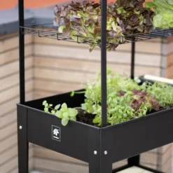 Dieses Hochbeet verbindet modernes Design mit rückenschonendem Gärtnern in angenehmer Stehhöhe.