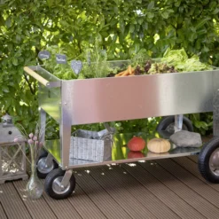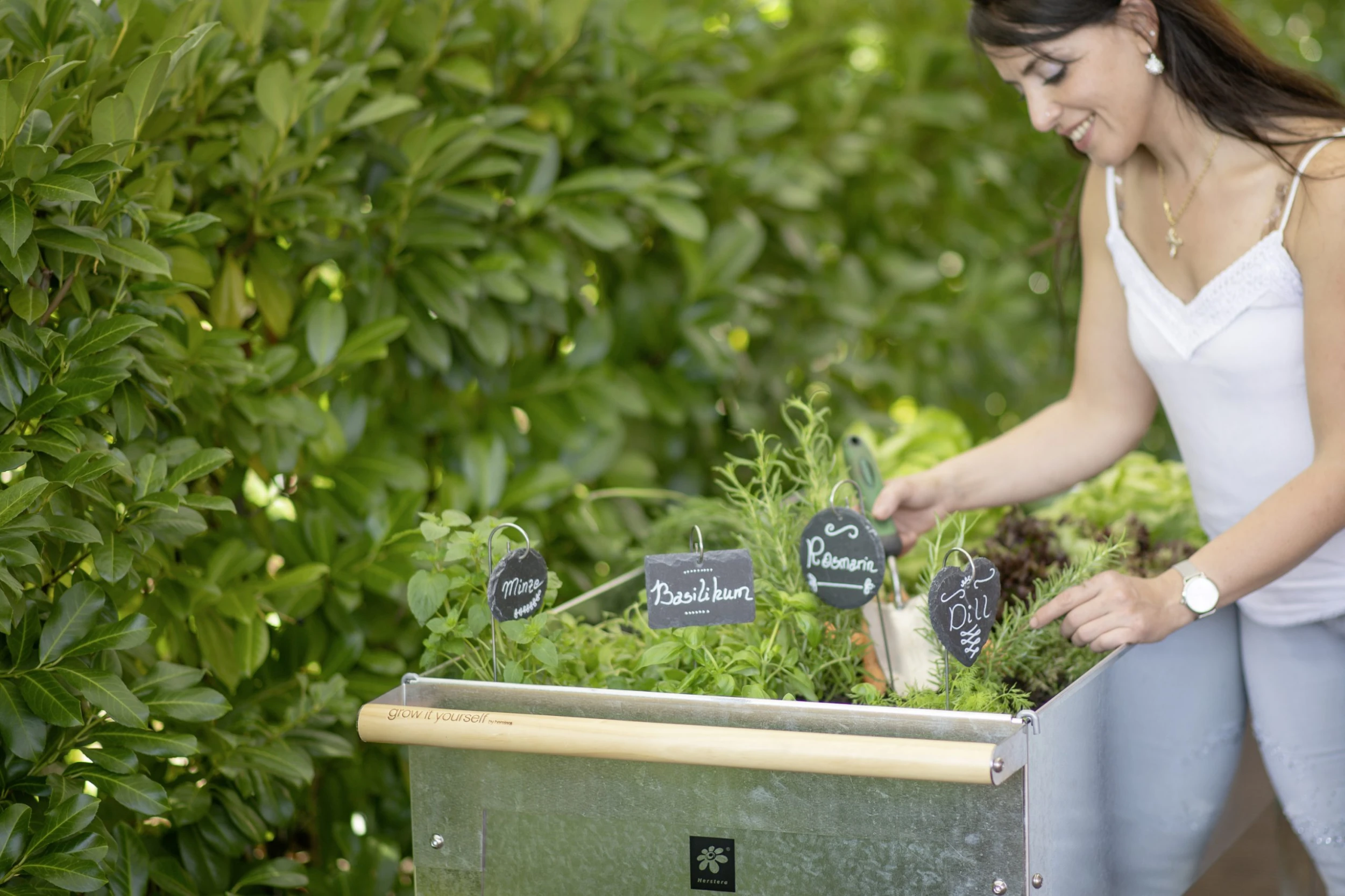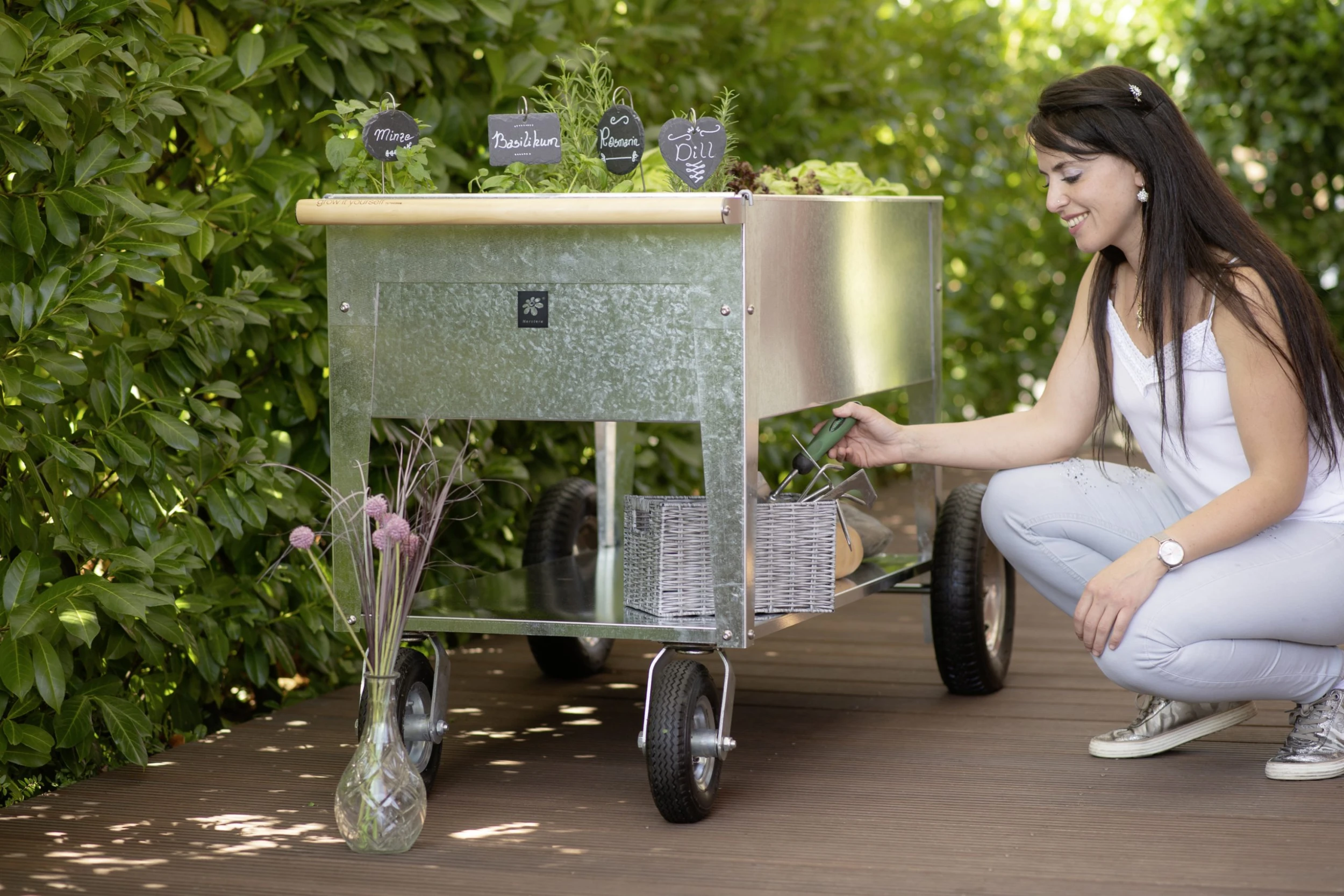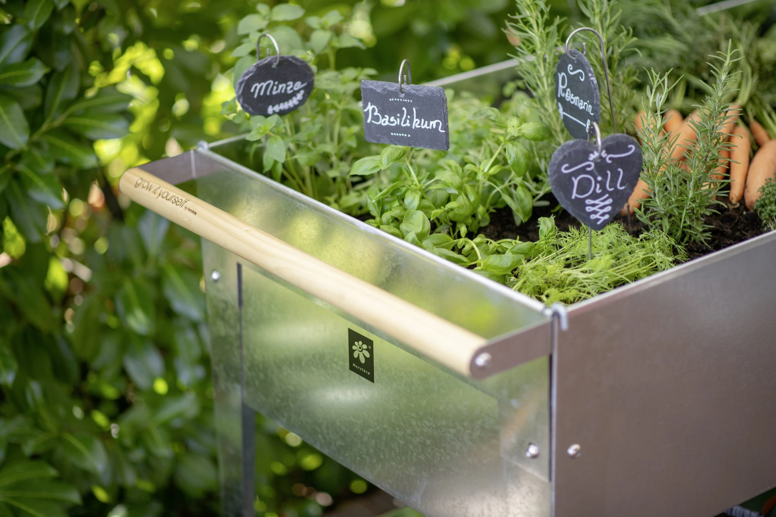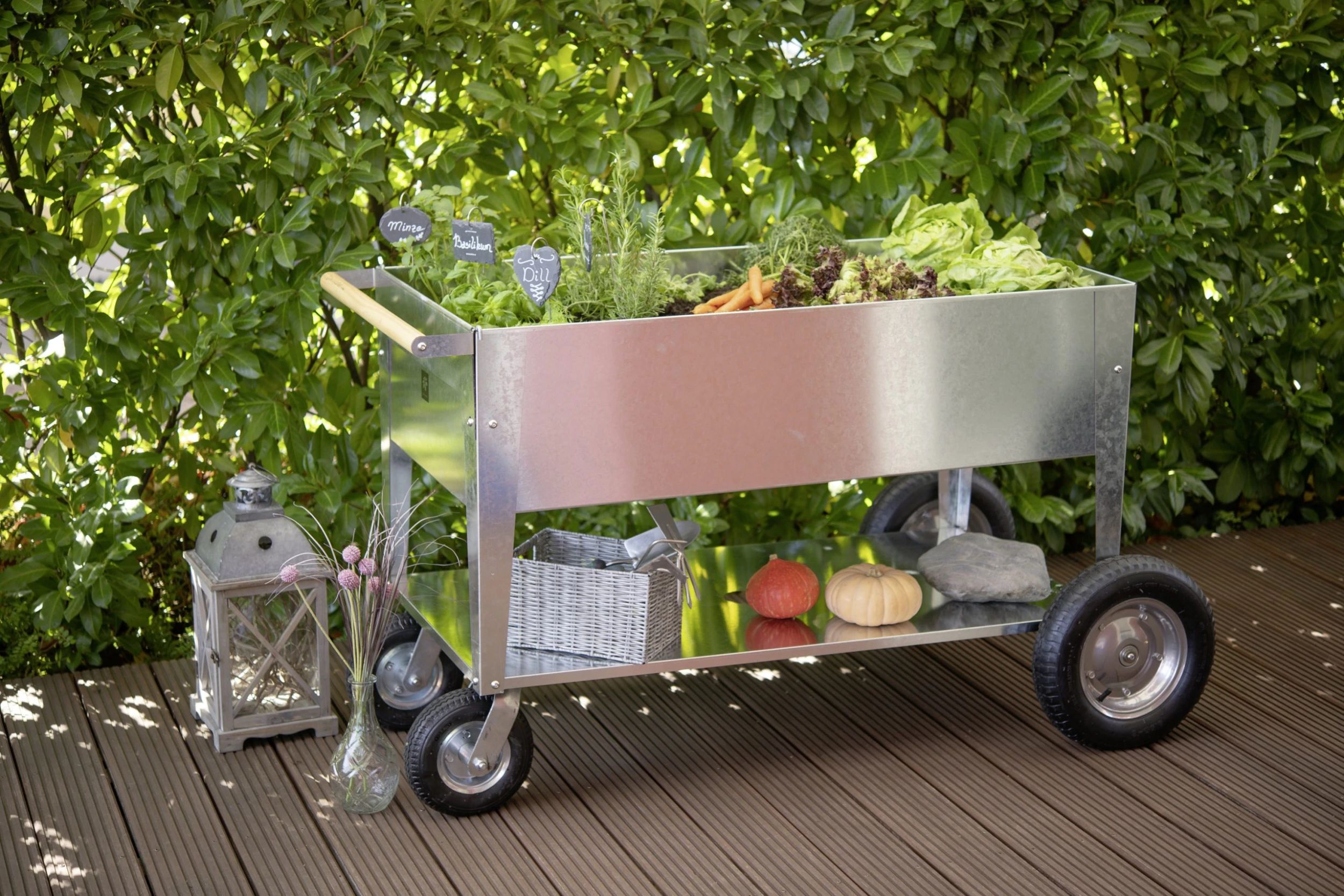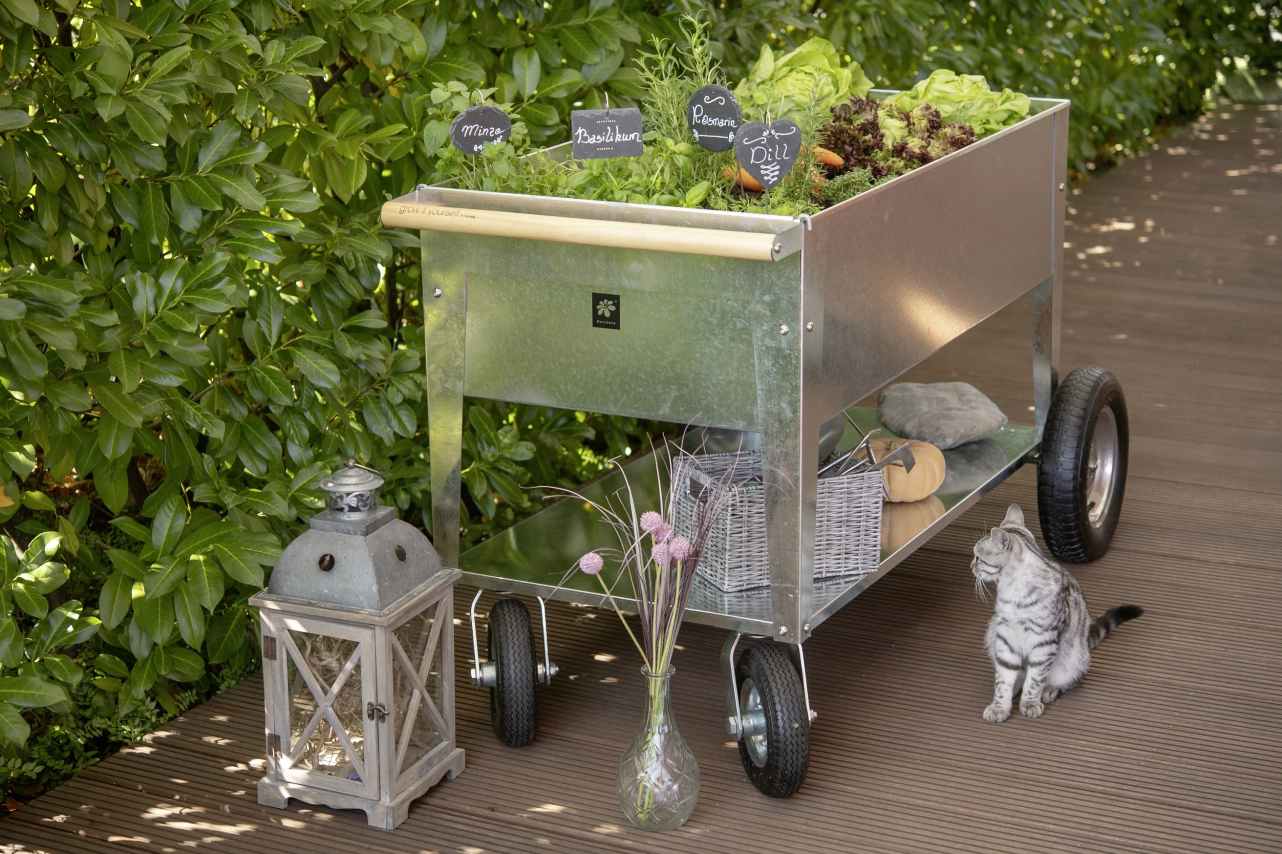 Dieses Hochbeet verbindet modernes Design mit rückenschonendem Gärtnern in angenehmer Stehhöhe.