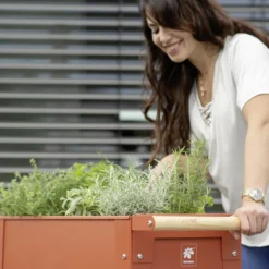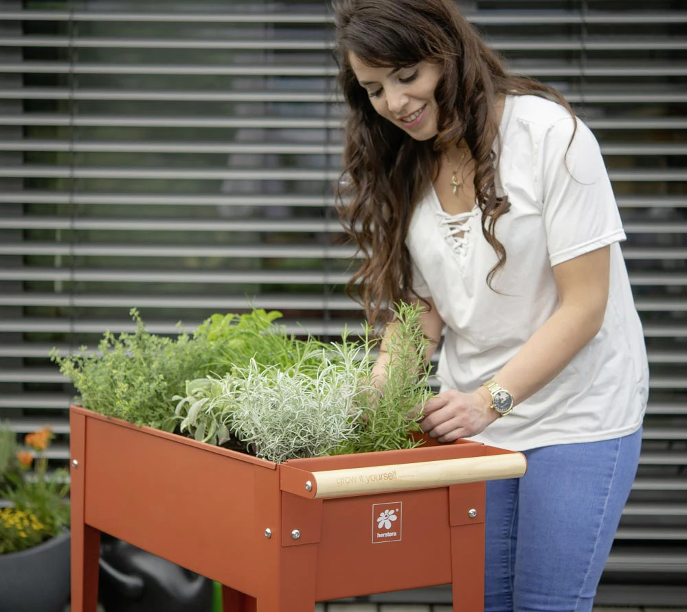 Dieses Hochbeet verbindet modernes Design mit rückenschonendem Gärtnern in angenehmer Stehhöhe.