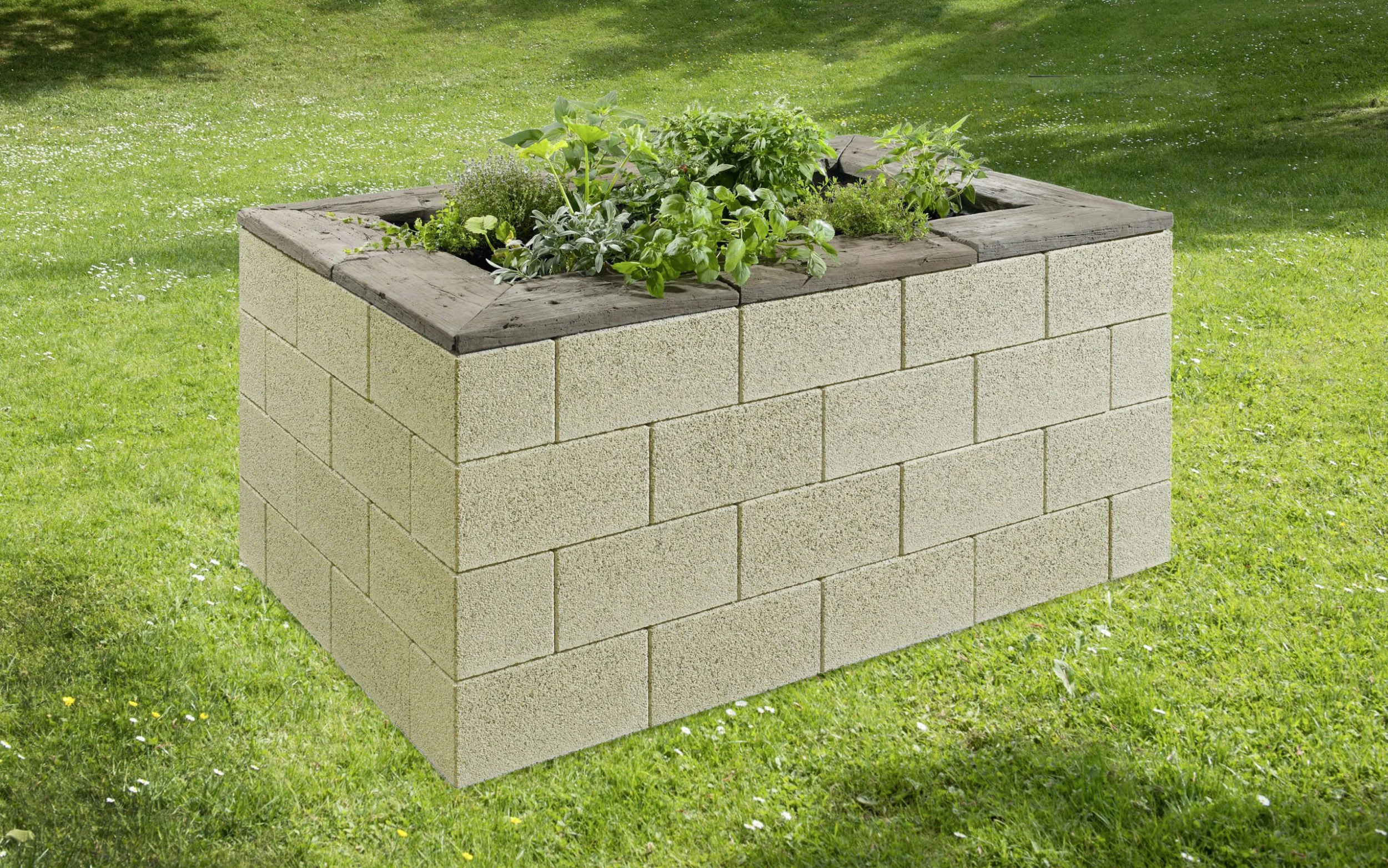 Mit ihrer gewaschenen, hochwertigen Oberfläche und feinster Natursteinkörnung sind die Gomera-Mauerelemente ein echter Blickfang im Garten, als Zier- oder Grundstücksmauer ebenso wie als Hochbeet. Die handlichen Hohlkammerelemente lassen sich leicht und gut verarbeiten, den Mauerabschluss bilden entweder die dazu passenden Abdeckplatten mit leichter Firstform und Tropfkanten oder alternativ die rustikaler wirkende Gartenschwelle Antik. Ein toller Stilbruch, der das Hochbeet absolut zeitlos und einzigartig wirken lässt.