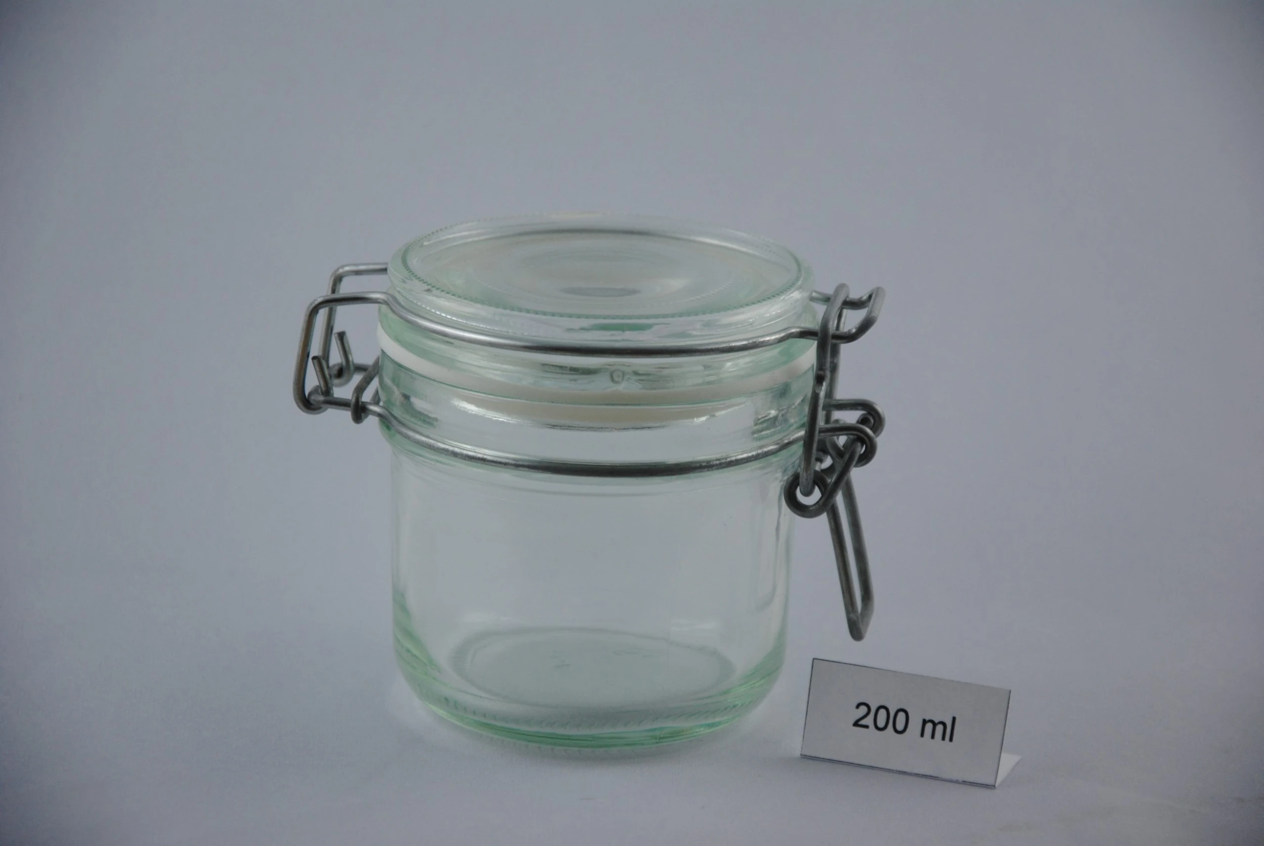 Drahtbügelglas 200 ml ist die beste Lösung sowohl zum Einmachen, als auch zum Aufbewahren, eignet sich zum mehrmaligen Gebrauch, nach dem Abbau der Metall-Komponenten kann in der Spülmaschine gereinigt werden