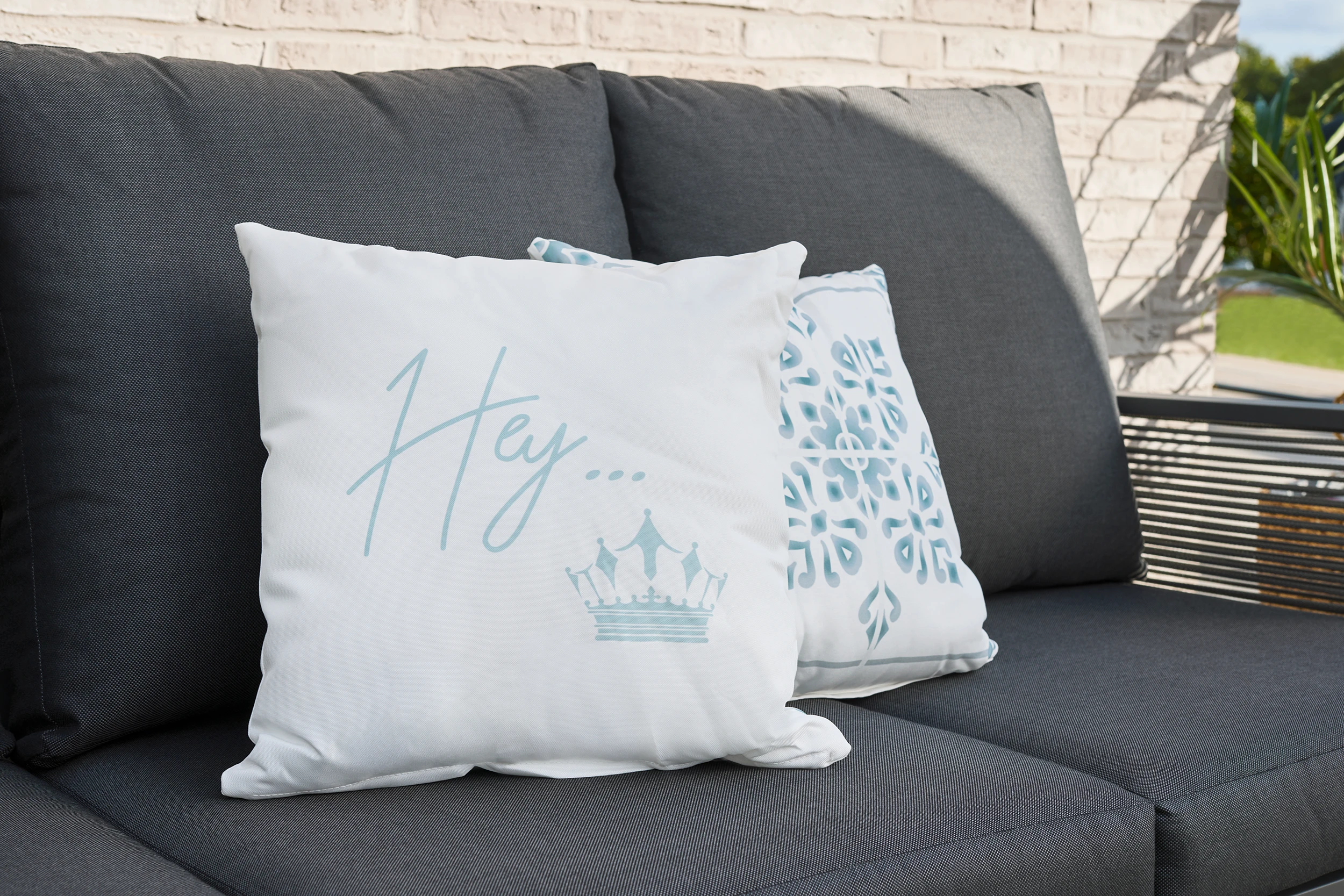 - Inkl. Sitz-, Rücken- und Zierkissen in anthrazit
