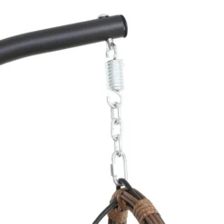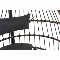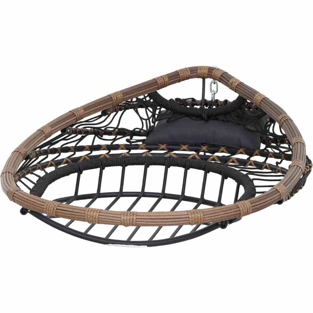 Der Salerno Hängekorb ist aus einem stabilem Stahlgestell gefertigt und in modernem matt anthrazit pulverbeschichtet. Die Kombination aus anthraziten Rope Fasern und flachem und rundem Kunststoffgeflecht in royal oak lässt ihn vielfältig und modern erscheinen. Durch die Kombination der unterschiedlichen Materialien, lässt sich Hängekorb platzsparend zusammenfalten und verstauen. Bequeme Sitzkissen sowie ein abnehmbares komfortables Kopfkissen bieten besten Sitzkomfort und laden zum lesen oder entspannen ein. Stabile Kunststofffüße an der Unterseite der 4 Standbeine, ermöglichen den Einsatz auf nahezu jedem Untergrund. Eine Sicherheitsleine am hinteren Teil des Korbes die mit dem Gestell verbunden werden muss, verhindert ein zu weites Schwingen und Schützt den Nutzer vor der Gefahr des Umkippens.
