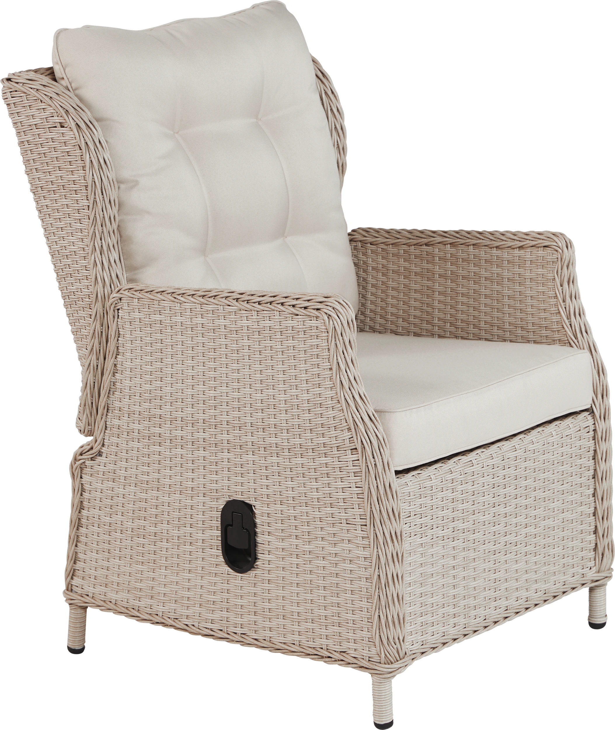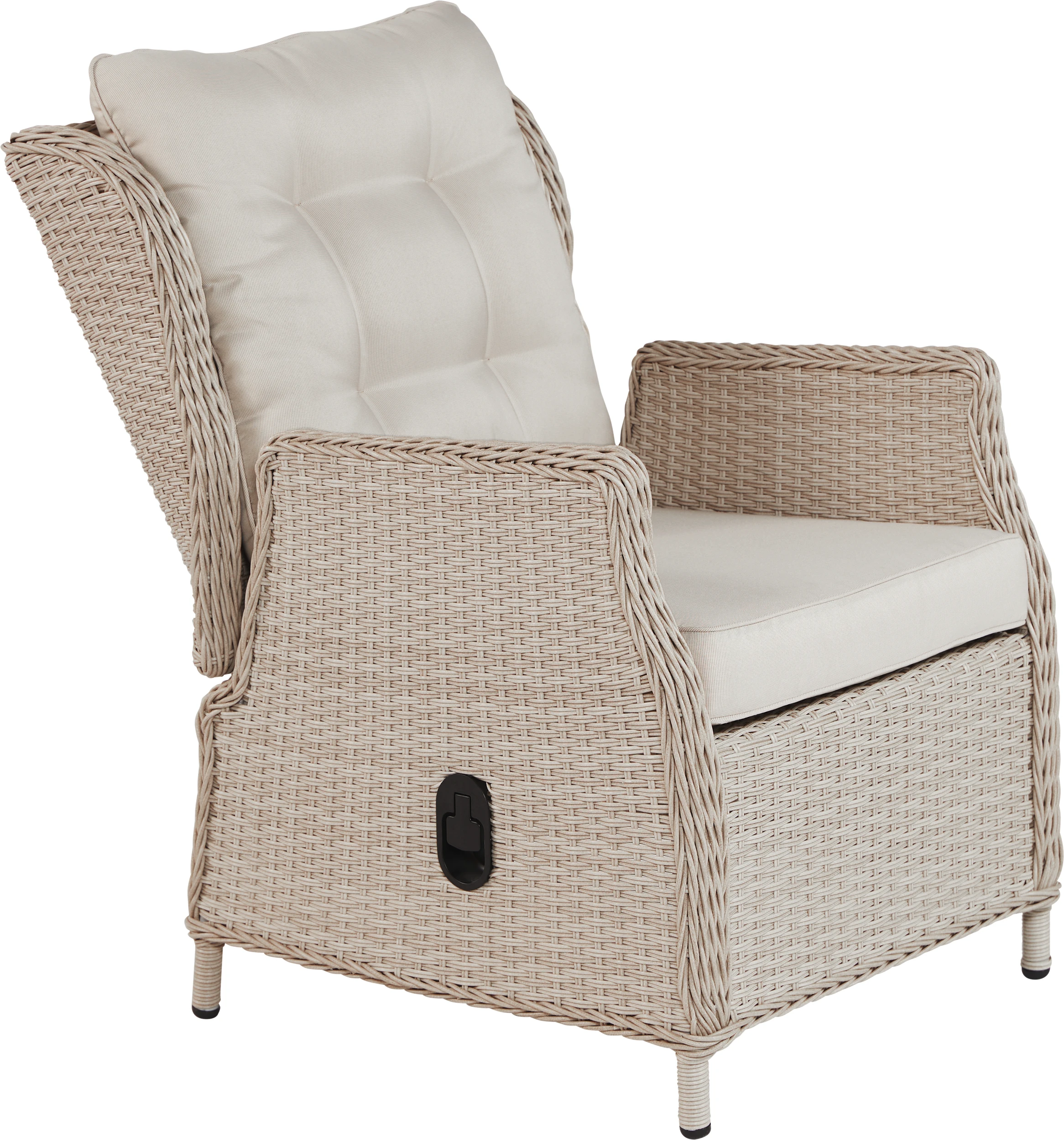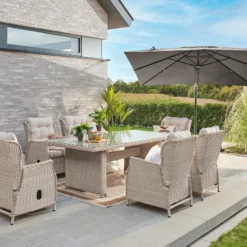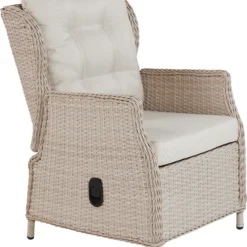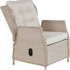 Machen Sie ihr gemütliches Beisammensein und ihre Mahlzeiten unter freiem Himmel zu einem besonderen Erlebnis. Die Sessel mit hohen Rückenlehnen sind nicht nur extra bequem, sie lassen sich dank der Hydraulik mit einem Handgriff stufenlos in die gewünschte Position bringen. Das gesamte Set ist aus hochwertigen Materialien gefertigt und besticht durch sein hochwertiges und witterungsbeständigem Kunststoffgeflecht in der Farbe beige. Die gemütlichen Polster bieten höchsten Sitzkomfort. Ob zum Speisen, Ausruhen oder auch Arbeiten mit dieser Garnitur der Marke Trendline wird alles zum Genuss.