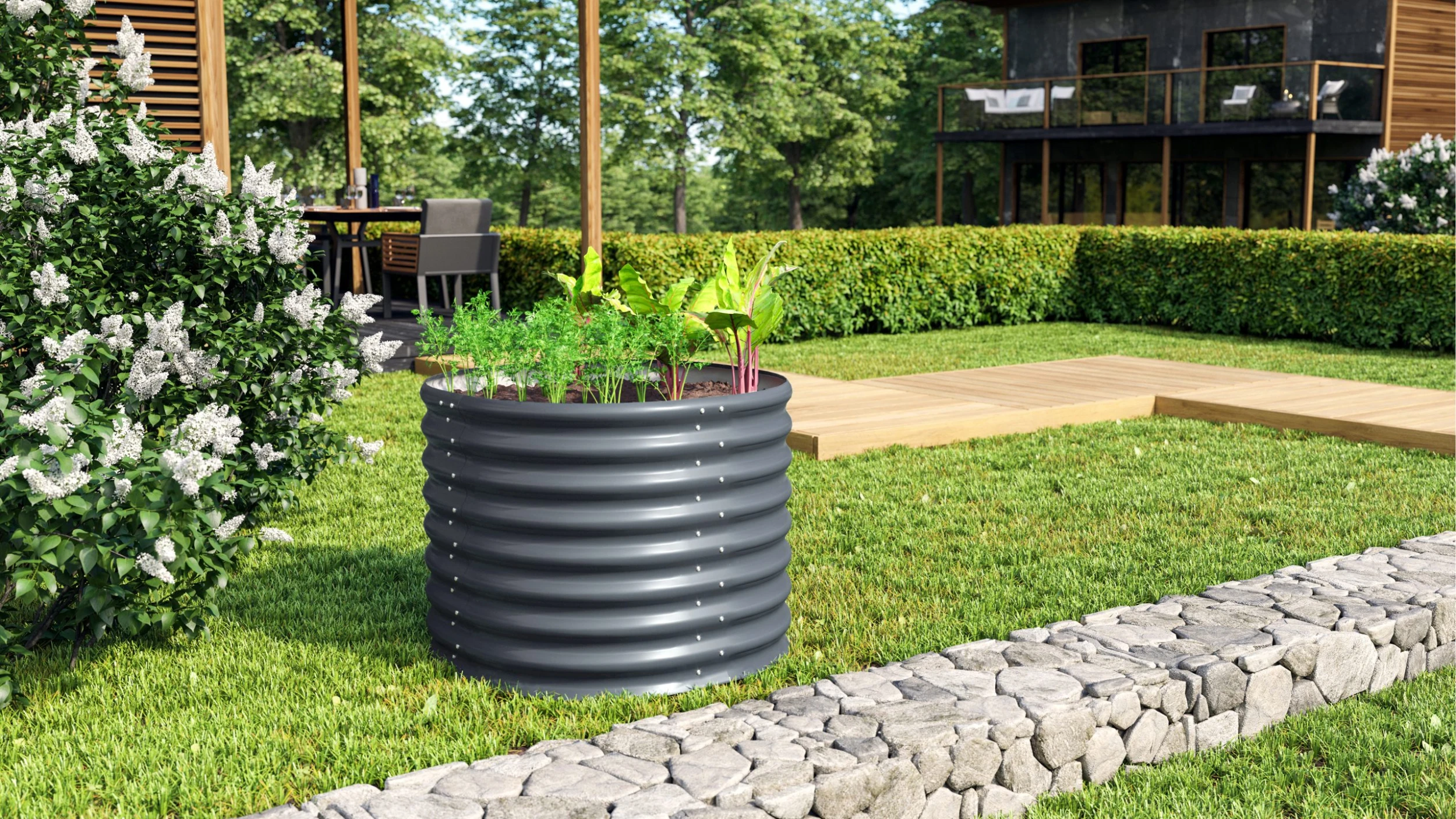 Hochbeete dienen der Arbeitserleichterung bei der Aufzucht von Gemüse und Kräutern, weil durch sie das ständige Bücken bei der Gartenarbeit entfällt. Außerdem führen sie zu einer merklichen Ertragssteigerung, da so für die Pflanzen optimale Bodenverhältnisse geschaffen werden können. Hergestellt aus dem extrem witterungsbeständigen Zincalume® benötigt das Hochbeet Terra im Gegensatz zu Holzbeeten keine Innenfolie: Es reagiert nicht mit organischen Materialien wie Erde und Pflanzen, wird also nicht dadurch beschädigt, gibt keine ungesunden Stoffe ab und verhält sich geschmacksneutral. Das Vitavia Hochbeet Terra besticht darüber hinaus durch moderner Optik und eine Vielzahl an Erweiterungsmöglichkeiten und Formgebungen: Die im Bausatz angelieferten einzelnen Module sind vorgebogen, die Verbindungsstücke vorgebohrt. Größe und Gestalt können mithilfe des Hochbeets Terra BASIC, der geraden Hochbeeterweiterung Terra STRETCHED und der gebogenen Erweiterung Terra CURVE frei kombiniert werden. Das Hochbeet Terra RUND ist die kleinste Variante und kann ebenfalls gut als dekorativer Pflanzkübel genutzt werden. Durch die frei kombinierbaren Module sind den Gestaltungsmöglichkeiten kaum Grenzen gesetzt. Zwischen die beiden runden Abschlusselemente und nach jeder Erweiterung Terra CURVE können können zwei gerade Bauelemente (Erweiterung Terra STRETCHED) aneinander gesetzt werden. So kann das Hochbeet auch optimal zur Abtrennung von Zonen im Garten oder als Sichtschutz eingesetzt werden. Die Hochbeete Terra RUND, Terra BASIC sowie die Erweiterung Terra STRETCHED sind in den Farben Blank, Granit und Rubin in drei verschiedenen Höhen erhältlich. In den Höhen von 40 und 63 cm sind die Hochbeete auch perfekt als Kinderbeet, Pflanzkübel, als Beet im Gewächshaus oder zur dekorativen Gartengestaltung einsetzbar. In der Standardhöhe von 86 cm steht die weitere Farbe Schwarz zur Verfügung.